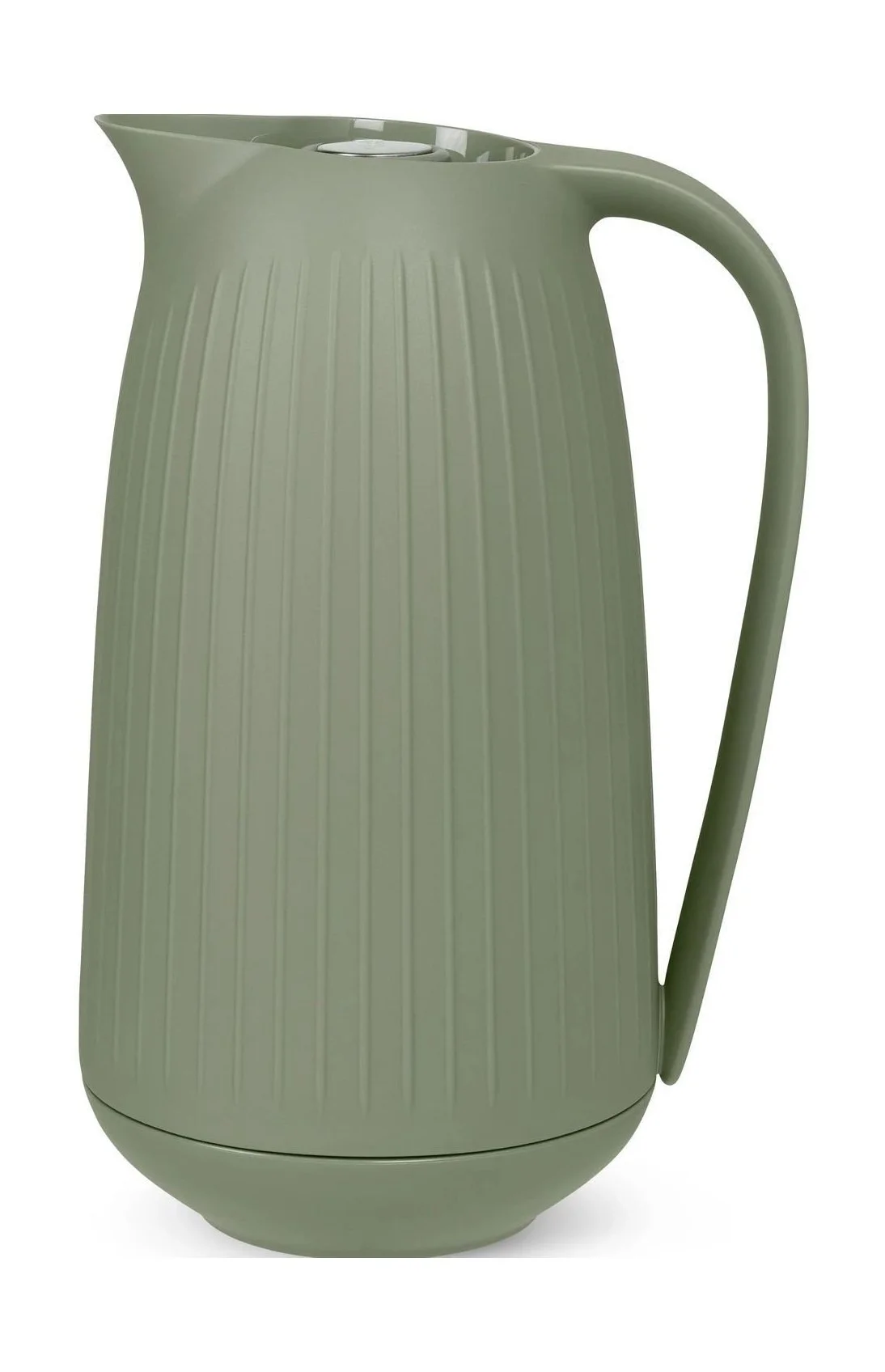 Hammershøi termokande er en del af Hammershøi serien fra Kähler, designet af Hans-Christian Bauer. Farven oliven grøn passer smukt til Hammershøi Poppy serien og Hammershøi porcelæn. Denne stilfulde og funktionelle Hammershøi termokande har et eksklusivt look med en fin, mat silkefinish, der fremhæver de ikoniske Hammershøi-riller, og som i kombination med det bløde integrerede håndtag gør den meget behagelig at håndtere. Kanden har en glasindsats til at holde væsken varm. Skrueknoppen holder tæt, og den indbyggede trykknap i højglanspoleret rustfrit stål gør det let at hælde fra kanden.